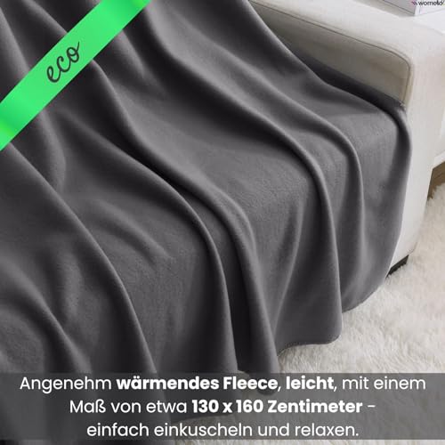 Qualität: original wometo Eco-Fleecedecken bleiben bekannt als bei häufiger Nutzung und nach der Wäsche fusselfrei (Anti-Pilling), Eco-Decke mit schmalem Kettelrand (Overlock-Stich) – jedweder 100% GRS zertifiziertem recyceltem Polyester (Control Bündnis 1231252)