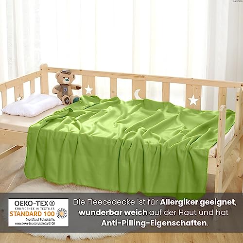 wometo Polar Fleecedecke oekoTex 130×160 ca. 400g mit Anti-Pilling und Kettelrand grün grasgrün