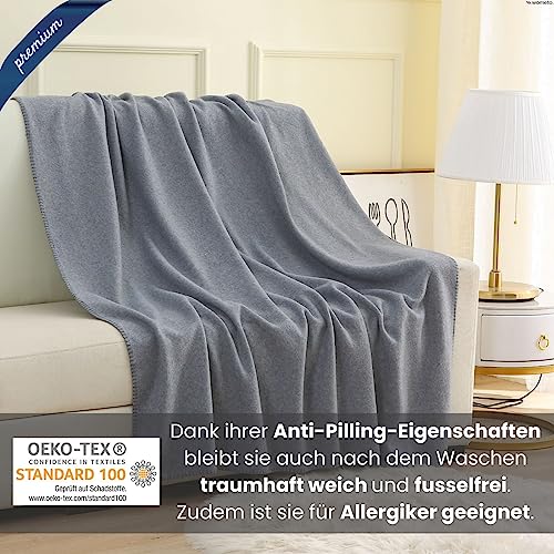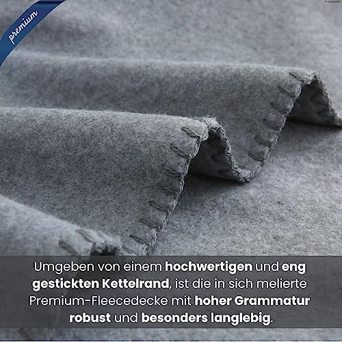 wometo Premium Fleecedecke Melange OekoTex 140×190 cm ca. 700g extra dick – grau Melange (Bi-Color) mit Anti-Pilling und Qualitäts-Kettelrand