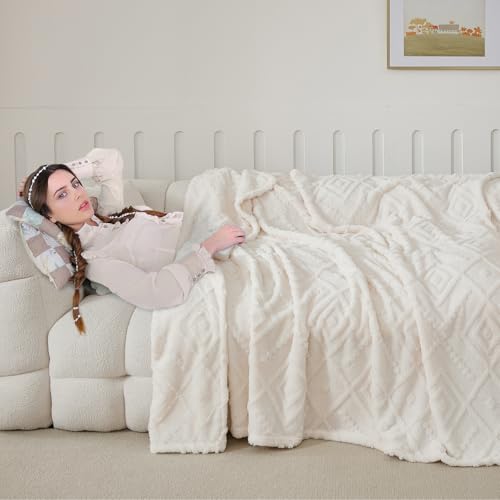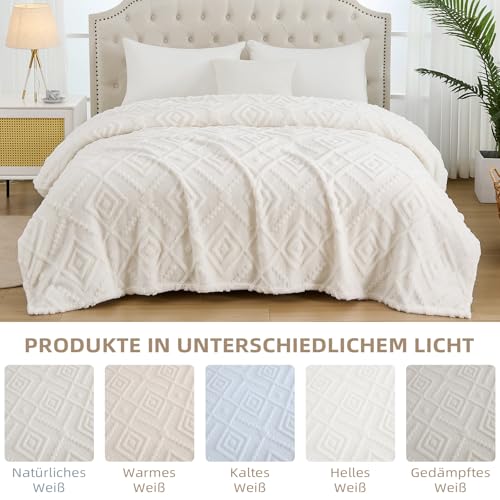 【Beidseitig verwendbares Design】: Diese doppelseitige Decke hat ein dickes Sherpa-Fleece auf der einen Seite und ein elegantes Jacquard-Muster auf der anderen Seite. Sie ist flauschig, plüschig und super kuschelig, und das einfache und stilvolle Design kann ein gemütliches und harmonisches visuelles Erlebnis bringen, das das ganze Jahr über modischen Komfort bietet.