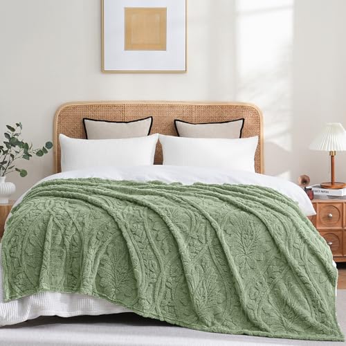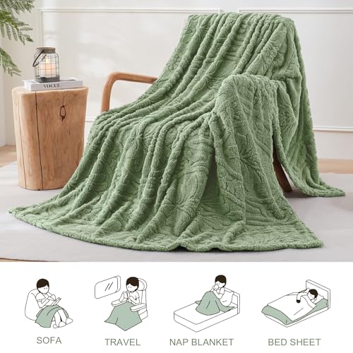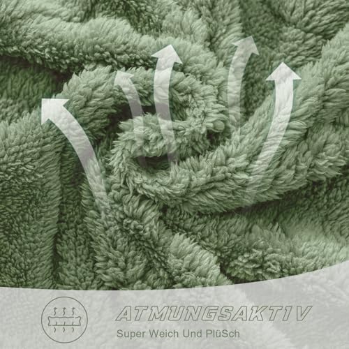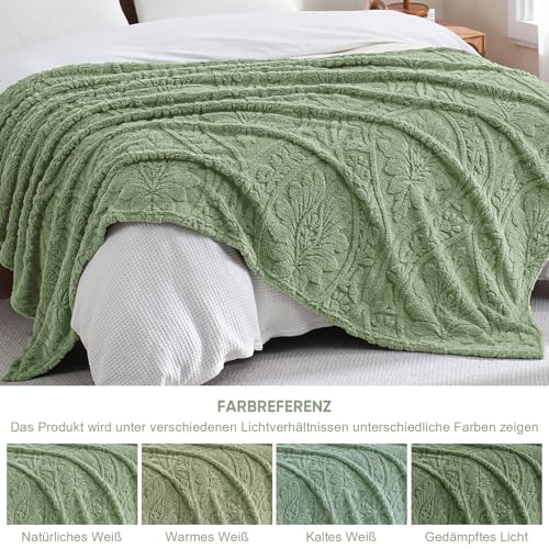 WONGS BEDDING Kuscheldecke Flauschig Decke Fleecedecke 150×200 cm, Sofadecke Wolldecke Couchdecke Warme Weiche Boho Decken Überwurf für Sofa Couch Bett, Grün