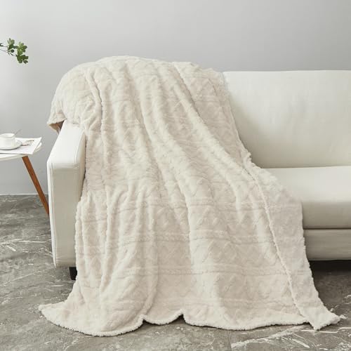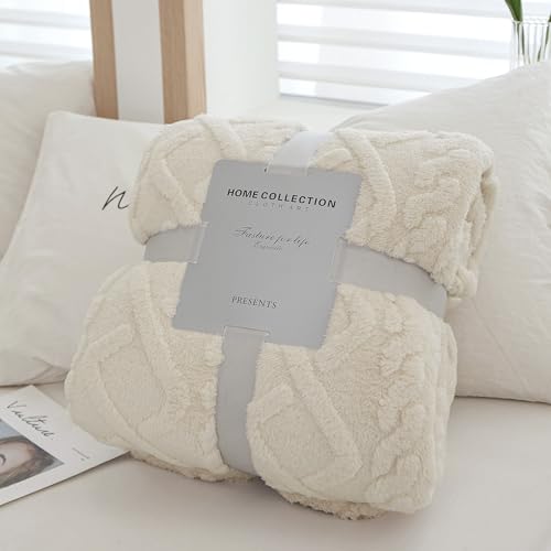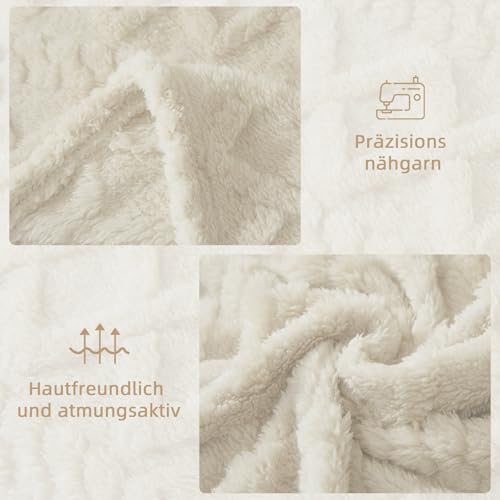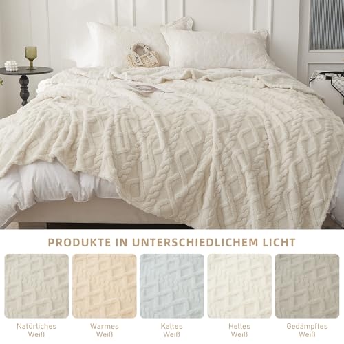 WONGS BEDDING Kuscheldecke Flauschig Decken für Sofa, Boho Decke Sofadecke Wolldecke 220×240, Fleecedecke, Wohndecke, Couchdecke Weiche Warme für Bett Couch Blanket, Weiß Creme
