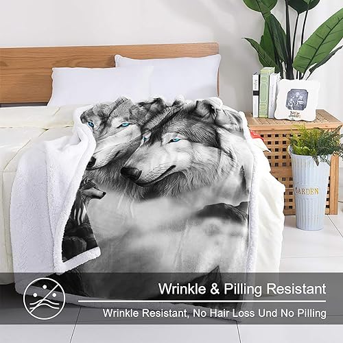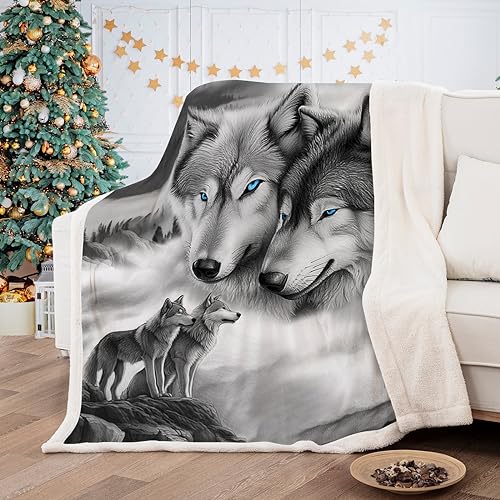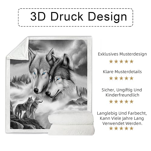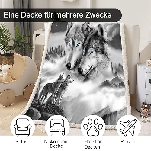 WONGS BEDDING Kuscheldecke Flauschig Sherpa Decke 3D Wolf Kinder Fleecedecke Wohndecke Grau Warm Sofaüberwurf Decke Sofadecke Couchdecke Tagesdecke für Bett & Sofa, 150×200 cm