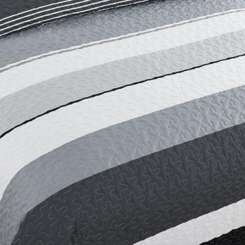 WONGS BEDDING Tagesdecke 240×260 Schwarz Weiß Bettüberwurf Schlieren Decke Steppdecke 3 teilig Doppelbett Gesteppt Bettdecke Mikrofaser Wohndecke mit 2 Kissenbezug 50×75 für Schlafzimmer Sofaüberwurf