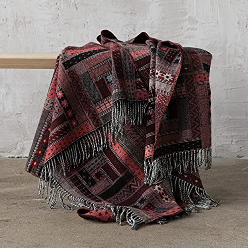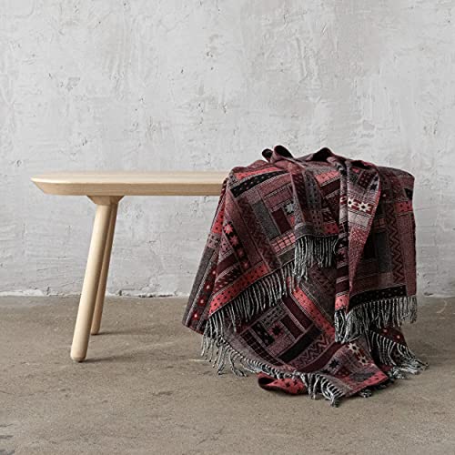 WoolMe Merino Wolldecke Schwarz Rot 130×180 cm Marta – luxuriöser Geschenkbox – Kuscheldecke flauschig aus Merino Wolle – Plaid Decke perfekt als Sofa Überwurfdecke, Sofadecke, Wohndecke, Couchdecke