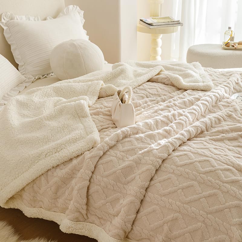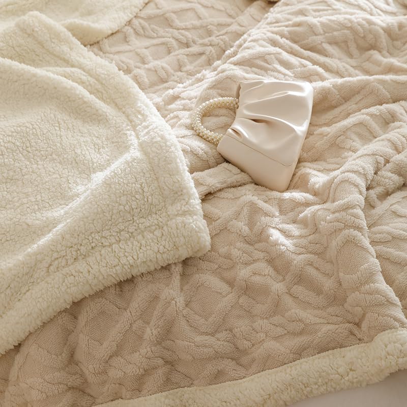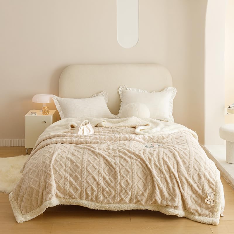 [Paket enthalten]: Die Kuscheldecke Größe in 200x230cm, Farbe in Beige – Weiß.