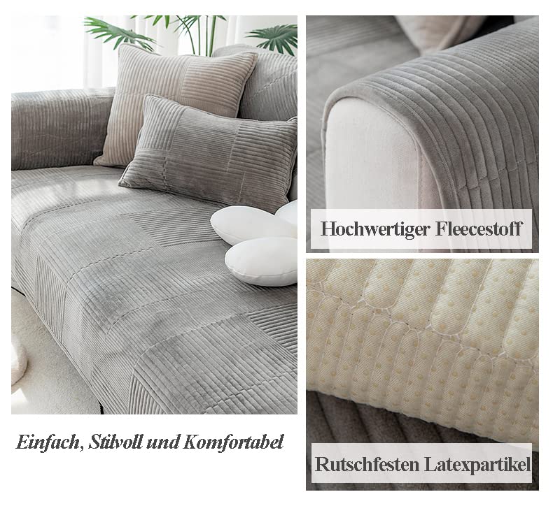 【Hohe Qualität】 Der Sofabezug besteht aus hochwertigem kurzes plush, großzügig und luxuriös, weich im griff, warm und bequem. Feine Erledigung, langlebig, stilvoll und schön, machen das sofa künstlerischer. Die rückseite ist mit rutschfesten Latexpartikeln versehen, die weich und kompakt sind, ohne das Sofa zu verletzen.
