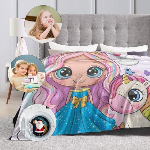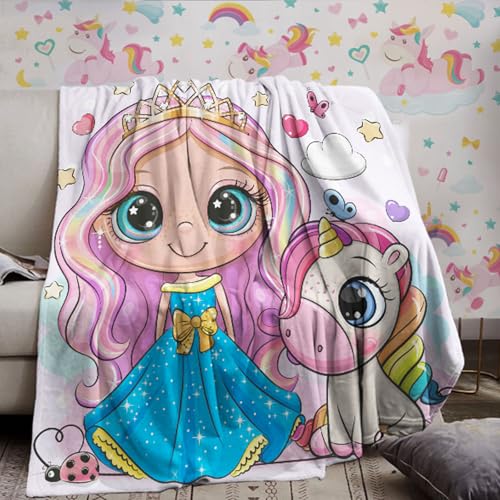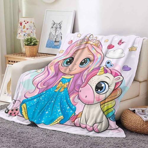 WZXGHE Einhorn kuscheldecke, Weich Bequem Flanell Einhorn Decke,Süße Sofa Decke Mit Tiermotiv,für Geschenk mädchen Vier Jahreszeiten (Einhorn-A, 150x200cm)