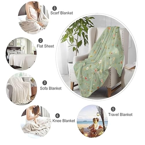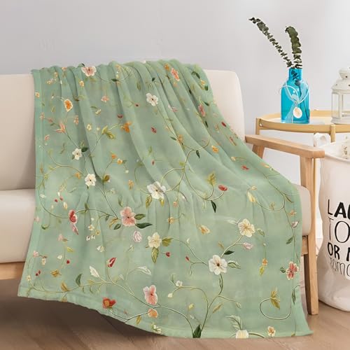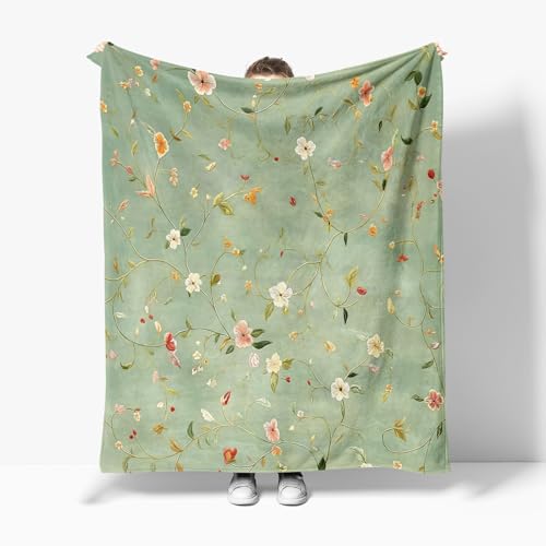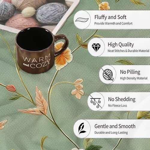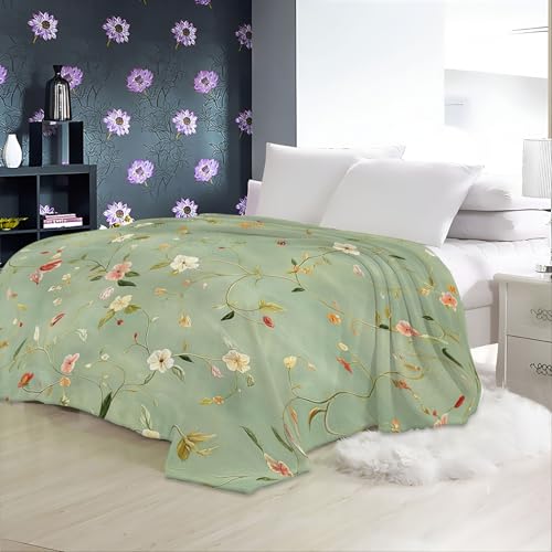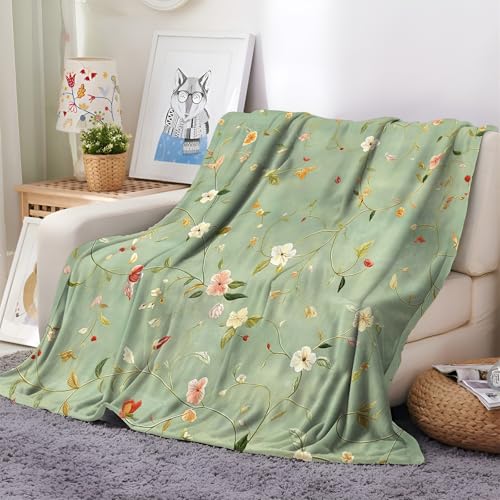 XCQHZYQ Kuscheldecke Flauschig Decke Blumen&Reben&Hellgrün 130×150 cm Fleecedecke Wohndecken Warm Sherpa Sofaüberwurf Flauschig Überwurf Tagesdecke für Bett Sofa Schlafzimmer Büro