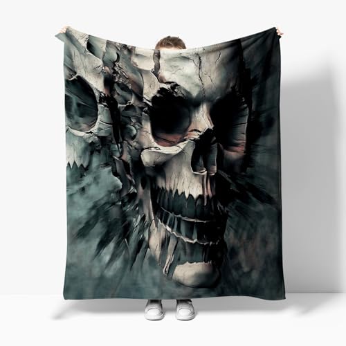 XCQHZYQ Kuscheldecke für Kinder Abstrakter Totenkopf grau 200×200 cm Decke Fleecedecke Sofadecke Kinderdecke, Superweiche Flanell Wohndecke Geschenke für Jungen Mädchen