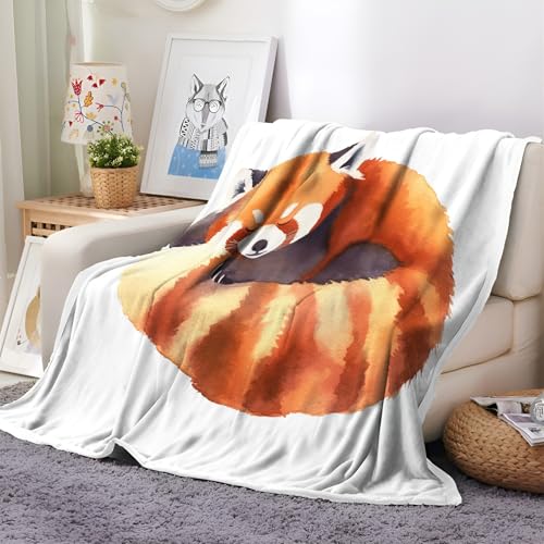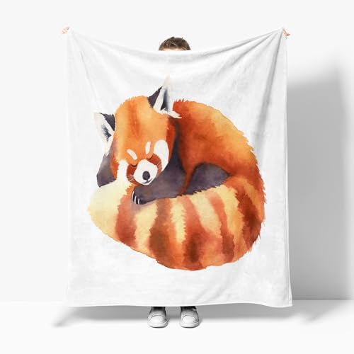 XCQHZYQ Kuscheldecke für Kinder Aquarellmalerei Roter Roter Panda 200×200 cm Decke Fleecedecke Sofadecke Kinderdecke, Superweiche Flanell Wohndecke Geschenke für Jungen Mädchen