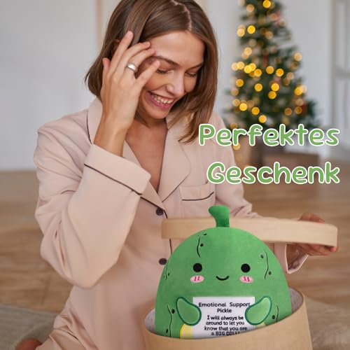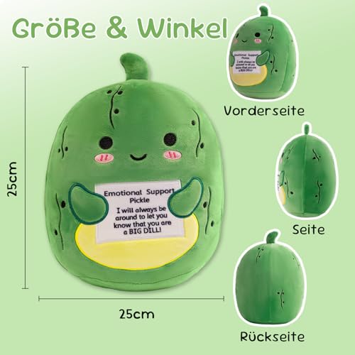 Xfrog Emotional Support Plush Positive Pickle Plushie Gurke Positive Plüschtier Süßes Kuscheltier Kissen Kuscheltiere für Kinder Mädchen und Jungen 25cm