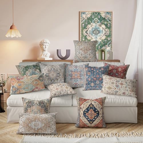 【Exquisites Design】 Die doppelseitigen Boho-Kissenbezüge mit Muster passen zu den meisten Wohnkulturen. Wie dieser schöne Boho-Teppich in Ihrem Wohnzimmer brauchen Sie diese lebendigen Töne, um Frühling, Sommer, Herbst und Winter zu begrüßen