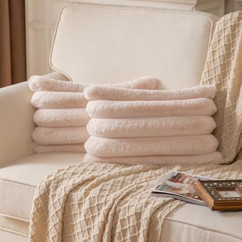 Yaertun 2er Set gestreifte Kissenbezug 30x50cm Beige dekorative Kissenbezüge Sofakissen Dekokissen Wurfkissenbezug zierkissenbezug plüsch Kunstfell Kissenhülle Schlafzimmer Wohnzimmer