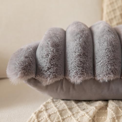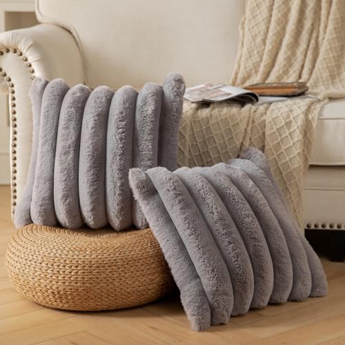 Yaertun 2er Set gestreifte Kissenbezug 45x45cm Grau dekorative Kissenbezüge Sofakissen Dekokissen Wurfkissenbezug zierkissenbezug plüsch Kunstfell Kissenhülle Schlafzimmer Wohnzimmer