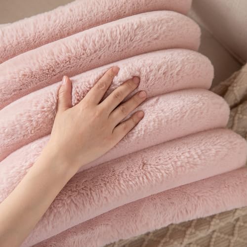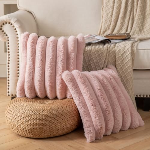 Yaertun 2er Set gestreifte Kissenbezug 45x45cm Rosa dekorative Kissenbezüge Sofakissen Dekokissen Wurfkissenbezug zierkissenbezug plüsch Kunstfell Kissenhülle Schlafzimmer Wohnzimmer