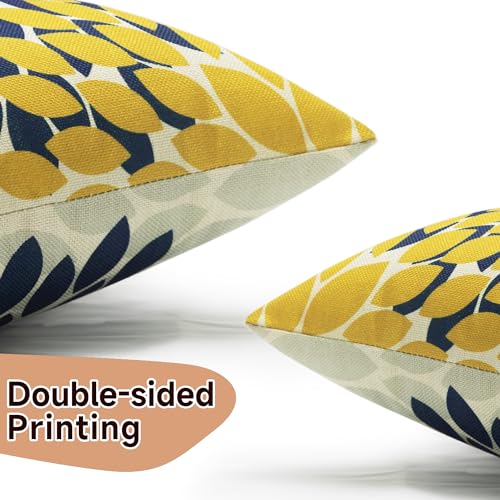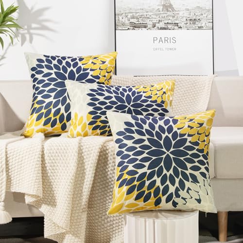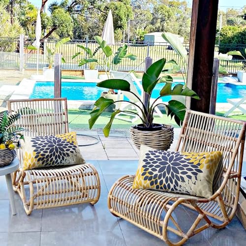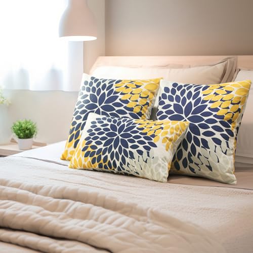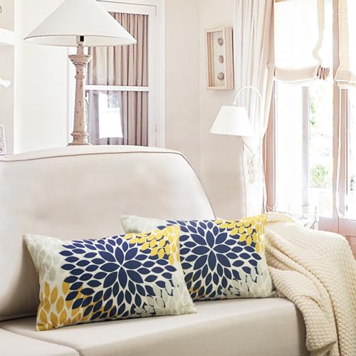 YCOLL Kissenbezug 30×50 2er Set Dekokissen Leinen Sofakissen Zierkissen Gelb und Blau Dahlie Kissenbezüge,für Sofa Schlafzimmer Wohnzimmer Outdoor Kissenhülle 30x50cm A251-12