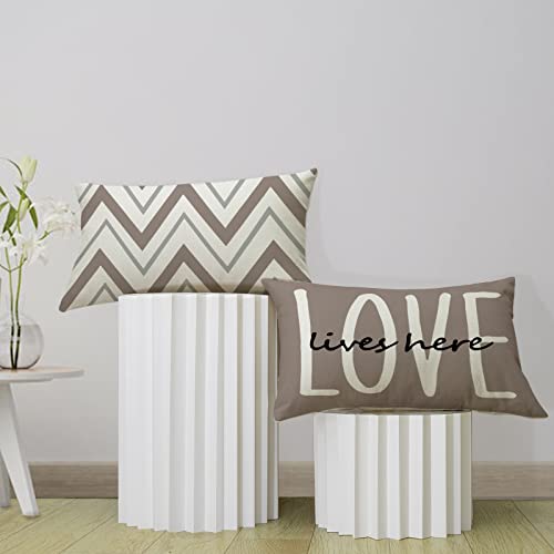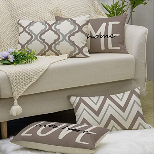 YCOLL Kissenbezug 30×50 4er Set Dekokissen Leinen Kissenbezüge Geometrische Muster Kissenhüllen für Sofa Schlafzimmer Couch Outdoor Kissen 30×50 Khaki