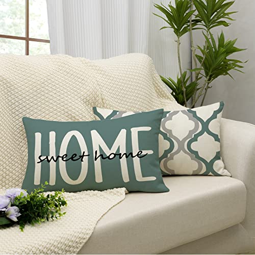 YCOLL Kissenbezug 30×50 4er Set Dekokissen Leinen Kissenbezüge Geometrische Muster Kissenhüllen für Sofa Schlafzimmer Couch Outdoor Kissen 30×50 Wassergrün