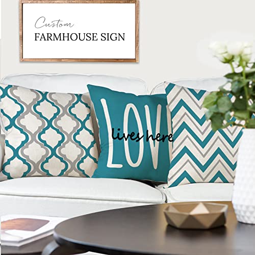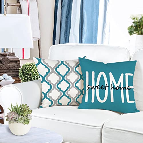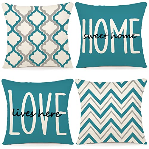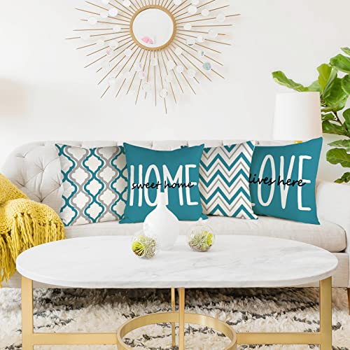 YCOLL Kissenbezug 50×50 4er Set Dekokissen Leinen Kissenbezüge Geometrische Muster Kissenhüllen für Sofa Schlafzimmer Couch Outdoor Kissen 50×50 Wasserblau