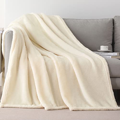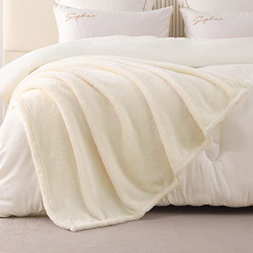 Yebeda Kuscheldecke 130 x 170 cm Elfenbein Warme Plüschdecke/Fleecedecke/Wohndecke/Sofadecke – Superweiche, Kuschelige & Angenehme Mikrofaser Flanell-Decke