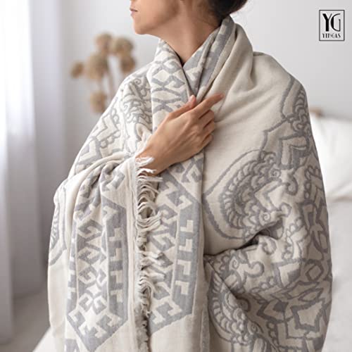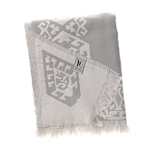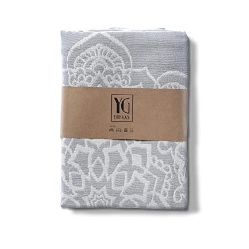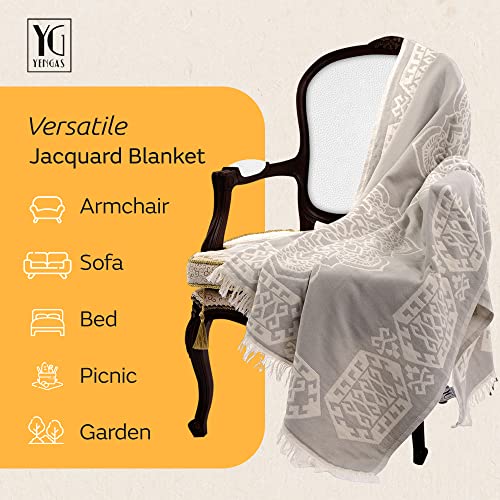 YENGAS Sofadecke, 100% Baumwolle, Oeko-TEX, Kuscheldecke, Tagesdecke, Plaid, Jacquarddecke, Blanket, gemütliche Allrounder-Decke, Weich & Kuschelige Decke, Sesseldecke, 130×170 cm, Grau