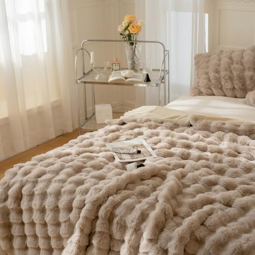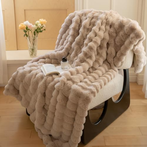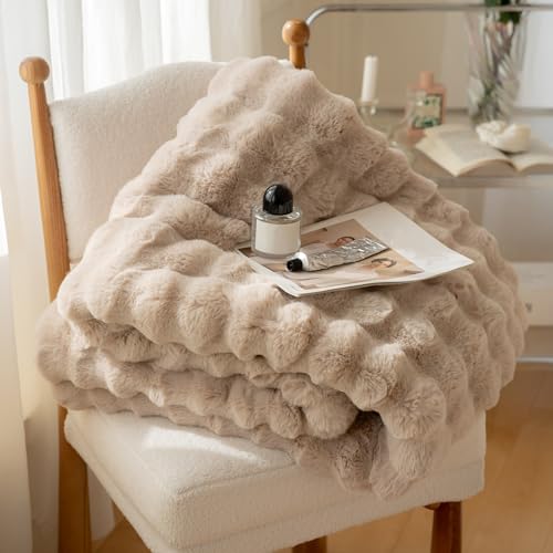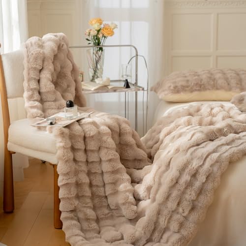 YeyeCyrilze Bubble Decke PlüSch Kunstfell Kissenbezug Weiß 45×45 cm KüNstlich Pelz KissenbezüGe Kuschelkissen Welle KissenhüLle Dekokissen Dekorative Weiche Zierkissenbezug Sofakissen FüR Wohnzimmer