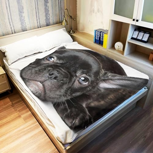 YISUMEI Decke 125×200 cm Kuscheldecken Sanft Flanell Weich Fleecedecke Bettüberwurf Schwarze französische Bulldogge