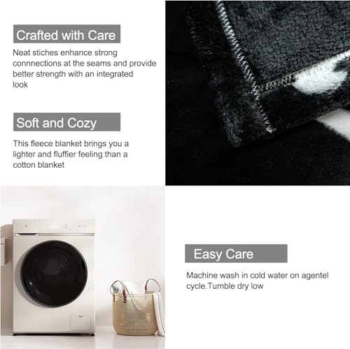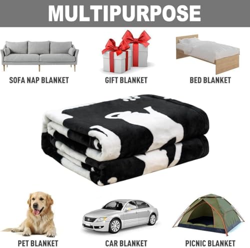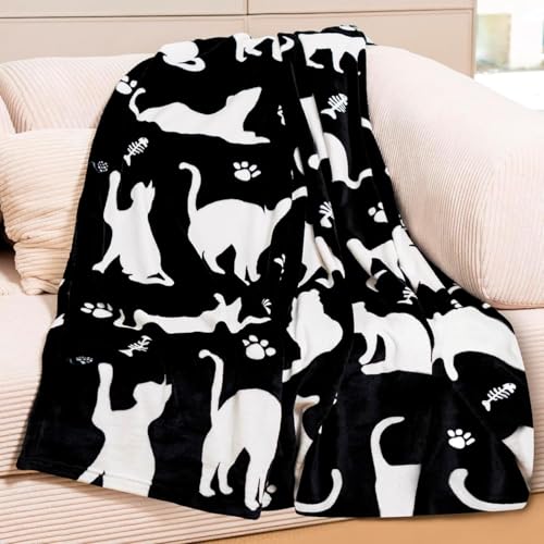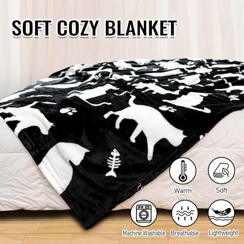 Katze Kuscheldecke zugunsten Kinder,Katzenmotiv Decke Kinder Weich Flauschig Fleecedecke Karikatur Einfaches Schwarz-Weiß Design Geschenke zugunsten Junge Mädche