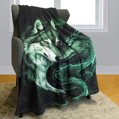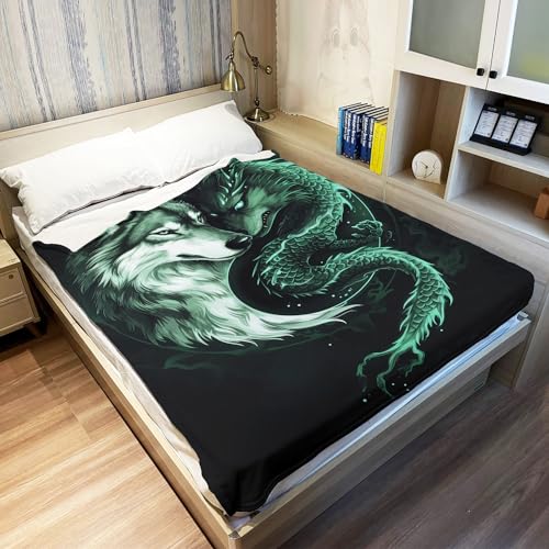 YISUMEI Kuscheldecke Weiche Warme Flauschige Fleece Decke, Wolf & Drache, 150 x 200 cm