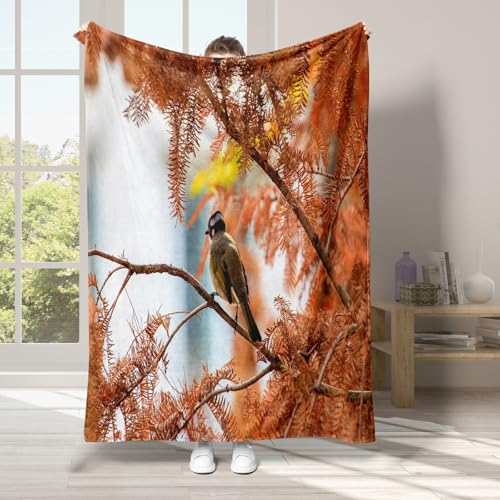 Ypthriline Bäume Kuscheldecke, Vögelchen Flanell-Mikrofaser Wohndecke – Ultraweiche Ganzjahres-Decke für Bett, Couch & Reisen – Stressabbau & Besserer Schlaf (180×200cm)