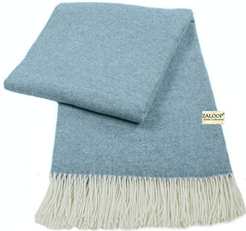 Zaloop Wolldecke Kaschmir versch. Farben ca. 140×200 cm Kaschmirdecke Decke Plaid Schurwolle blau