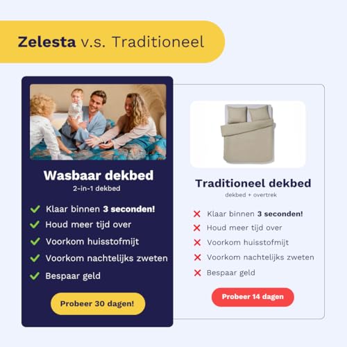 „- Waschmaschinen/Trocknerfreundlich: Hygiene griffbereit. In den meisten Haushalten werden Jedoch Bettbezüge regelmäßig gewaschen, während die Bettdecke selbst immer wieder vergessen wird. Mit dem Zelesta Easybed musst du dir keine Gedanken über zusätzliche Wäsche machen. Die Bettdecke kann in die Waschmaschine und Trockner gegeben werden, was dazu ermutigt, sie wöchentlich zu reinigen. So wird auf einfache Weise eine frische, hygienische Schlafumgebung beibehalten, ohne dich um die Wäsche zu kümmern.“