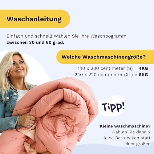 ✅ Waschmaschinen/Trocknerfreundlich: Hygiene griffbereit. In den meisten Haushalten werden im Unterschied dazu Bezüge regelmäßig gewaschen, während die Bettdecke selbst wieder und wieder vergessen wird. Mit dem Zelesta Easybed Light musst du dir keine Gedanken über zusätzliches Waschen machen. Die Bettdecke kann einfach in die Waschmaschine & Trockner gegeben werden, was dazu ermutigt, sie wöchentlich zu reinigen. So wird auf einfache Weise eine frische und hygienische Schlafumgebung beibehalten, ohne dich darum zu kümmern.