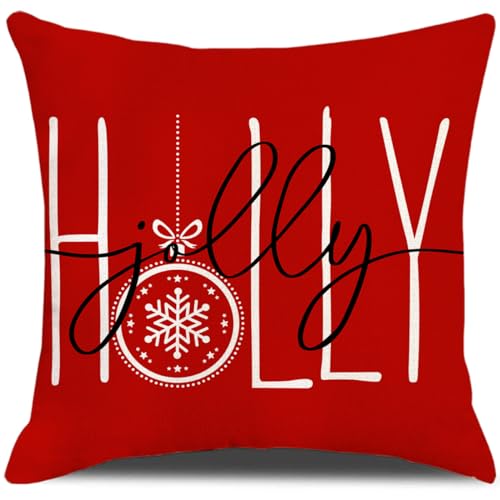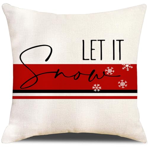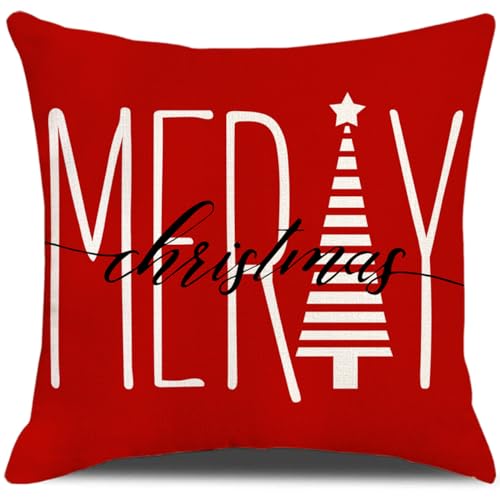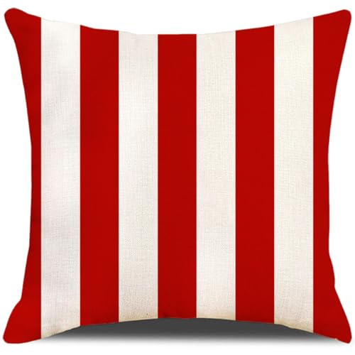 ZHAOMIMI 4er Set Dekorativ Kissenhülle Baumwolle Leinen Kissenbezug Dekokissen Sofakissen für Couch, Auto, Schlafzimmer 45×45 cm (Rot Streifen Weihnachten)