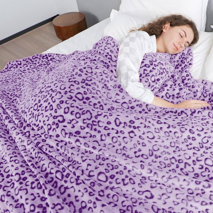 Abzweigung Mikrofaser-Decke: Unsere flauschige Decke ist ganz hochwertigem Material, bequem und warm. Gemütliche, warme Decke, die belüftet ist, gemütliche Decke mit Leopardenmuster – weiche Plüsch-Leopardendecke für Couch, leicht, warm, kein Ausfallen, kein Pilling, kein Verblassen, kein Schrumpfen. Violette Fleece-Überwurfdecke für Couch, gemütliche, weiche Decken und Überwürfe. Abzweigung Decken mit Leopardenmuster Acht geben ein luxuriöses Aussehen.