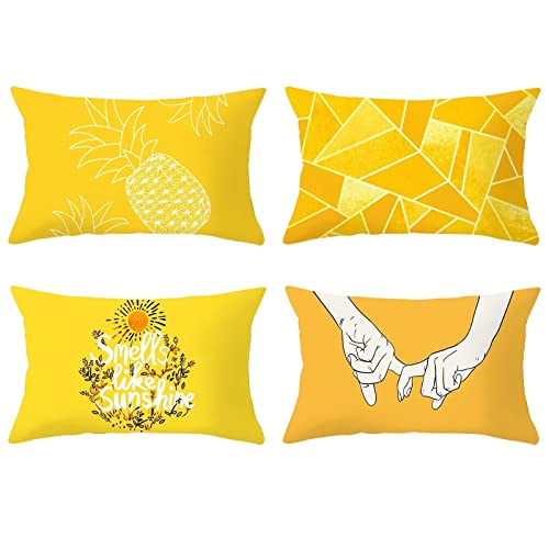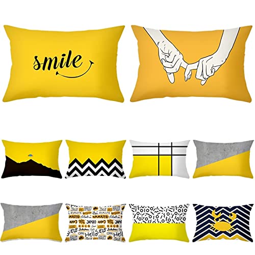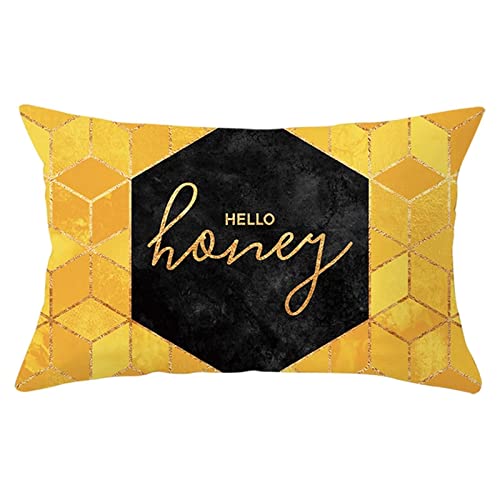 Zierkissen Gelb, Dekokissen Vintage 30X50cm Polyester Kissenbezug 1Stück Hallo Schatz Würfelgitter für Stuhl Sofa Wohnzimmer Schlafzimmer