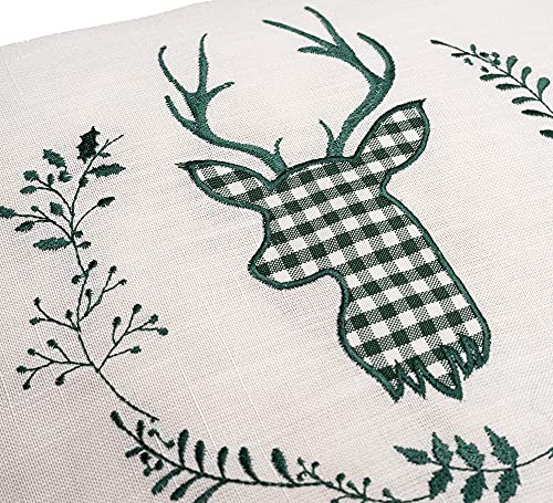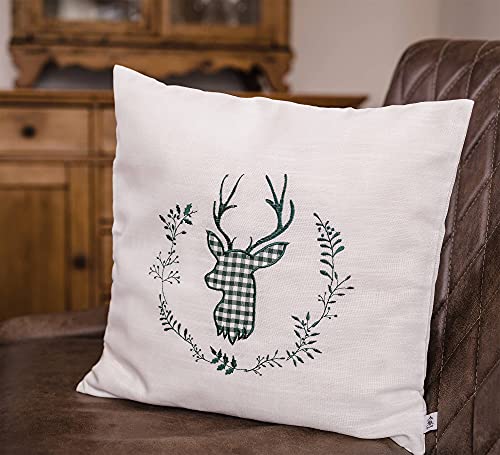 beiges Zirbenkissen grün bestickt Qua Hirsch