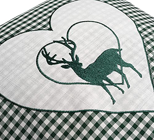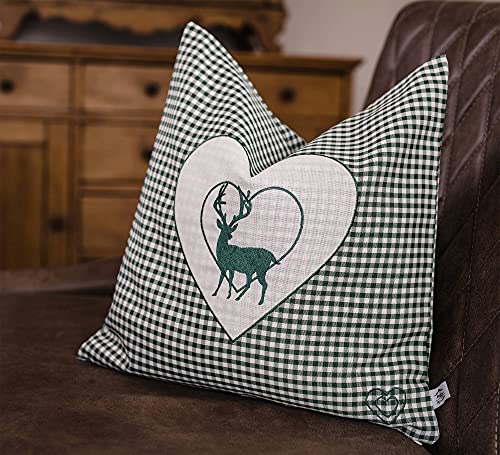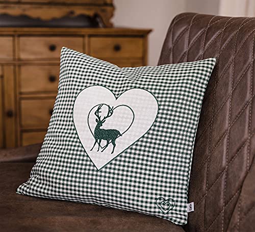 grün karriertes Zirbenkissen fein bestickt Durch Hirsch im Übrigen Herz