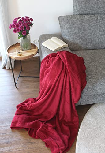 ZOLLNER Kuscheldecke flauschig XXL in 220×240 cm – super kuschelige und warme Sofadecke – waschbar bis 95°C – atmungsaktive Mikrofaser in rot – Hotelwäschequalität – Oeko Tex® Zertifiziert