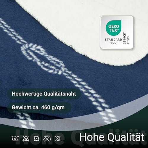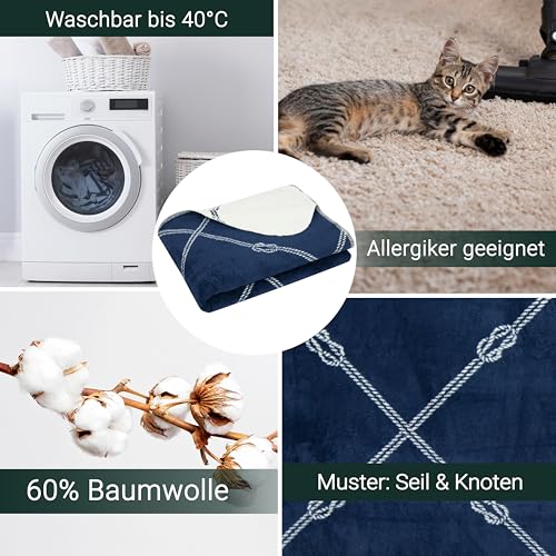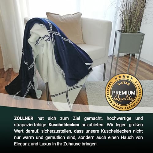 ZOLLNER Kuscheldecke flauschig in 150×200 cm – kuschelige und weiche Sofadecke in blau – waschbar bis 40°C – atmungsaktives Mischgewebe – Hotelwäschequalität – Oeko Tex® Zertifiziert