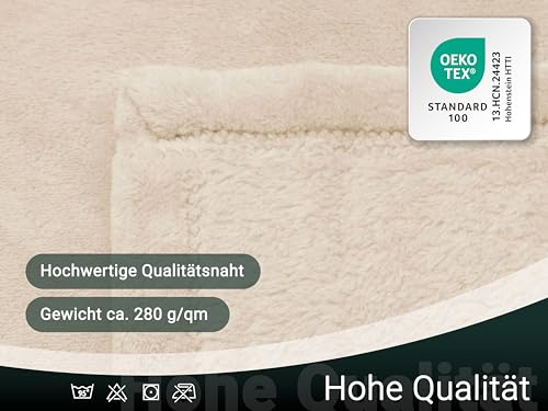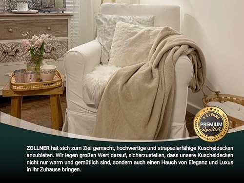 ZOLLNER Kuscheldecke flauschig in 150×200 cm – super kuschelige und warme Sofadecke – waschbar bis 95°C – atmungsaktive Mikrofaser in beige – Hotelwäschequalität – Oeko Tex® Zertifiziert