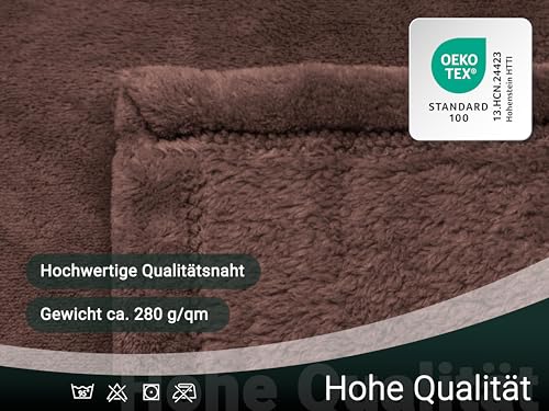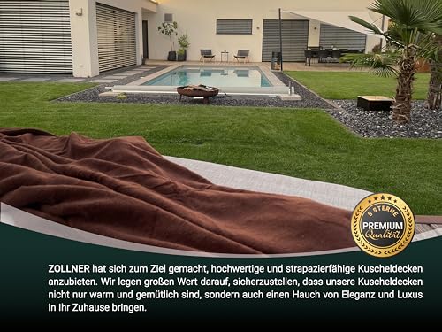 ZOLLNER Kuscheldecke flauschig in 150×200 cm – super kuschelige und warme Sofadecke – waschbar bis 95°C – atmungsaktive Mikrofaser in braun – Hotelwäschequalität – Oeko Tex® Zertifiziert