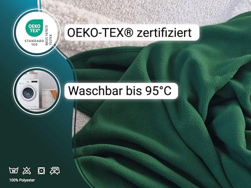 ZOLLNER Kuscheldecke in 130×170 cm – kuschelige und langlebige Fleecedecke – waschbar bis 95°C – hochwertiges Einfassband – antistatisch – Polyester – in dunkelgrün – Oeko Tex® Zertifiziert