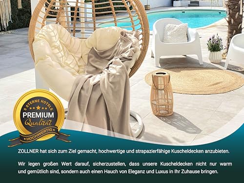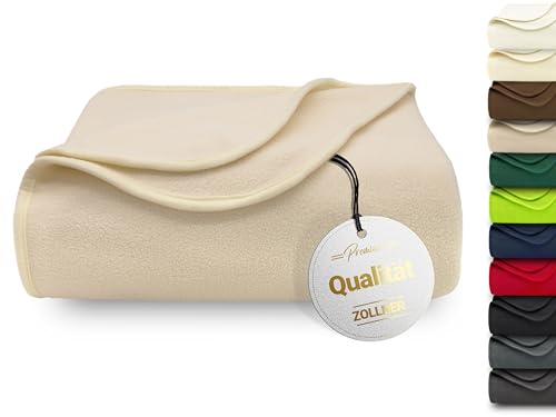 ZOLLNER Kuscheldecke in 130×170 cm – kuschelige und langlebige Fleecedecke – waschbar bis 95°C – hochwertiges Einfassband – antistatisch – Polyester – in Sand – Oeko Tex® Zertifiziert