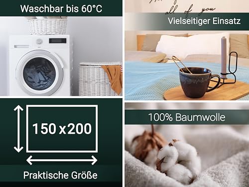 HOCHWERTIGES MATERIAL – Die Decke wurde aus 100% Baumwolle gefertigt und hat ein Materialgewicht von 200 g/qm. Die Kombination der dezenten Farben und dem zeitlosen Waffelmuster bietet viele Möglichkeiten, um wohnliche Akzente zu setzen.
