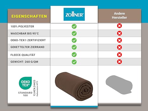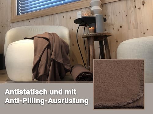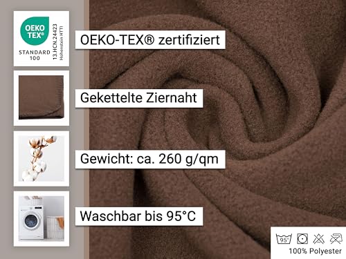 ZOLLNER Kuscheldecke in braun- weiche Couchdecke in 130×170 cm – mit Kettelrand – Polyester – waschbar bis 95°C – Hotelqualität – Oeko Tex® Zertifiziert