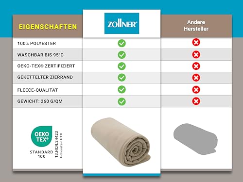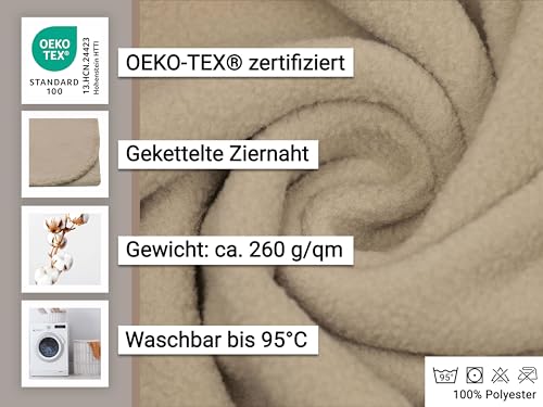 ZOLLNER Kuscheldecke in Sand – weiche Couchdecke in 130×170 cm – mit Kettelrand – Polyester – waschbar bis 95°C – Hotelqualität – Oeko Tex® Zertifiziert