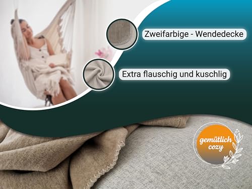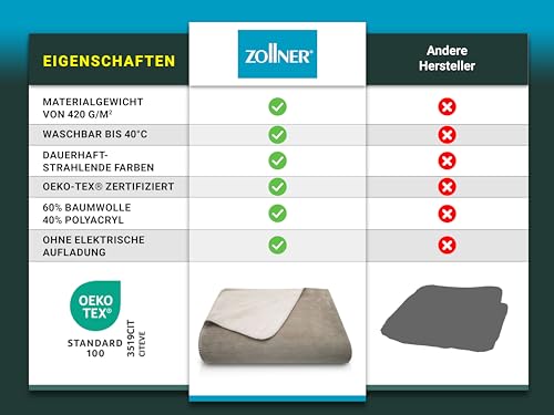 ZOLLNER Kuscheldecke zweifarbig in 150×200 cm – kuschelige Sofadecke in Fango – waschbar bis 40°C – langlebiges Mischgewebe – Hotelwäschequalität – Oeko Tex® Zertifiziert