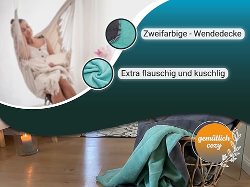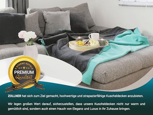 ZOLLNER Kuscheldecke zweifarbig in 150×200 cm – kuschelige Sofadecke in türkis – waschbar bis 40°C – langlebiges Mischgewebe – Hotelwäschequalität – Oeko Tex® Zertifiziert
